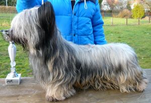 Der Skye besitzt von allen Terriern den längsten Rücken. Lang und auf kurzen Läufen stehend – eine Schulterhöhe von ca. 26 cm bei einer Körperlänge von etwa 60 cm – hat er dennoch keinerlei Rückenprobleme, wie sie bei anderen, ähnlich gebauten Rassen vorkommen können.